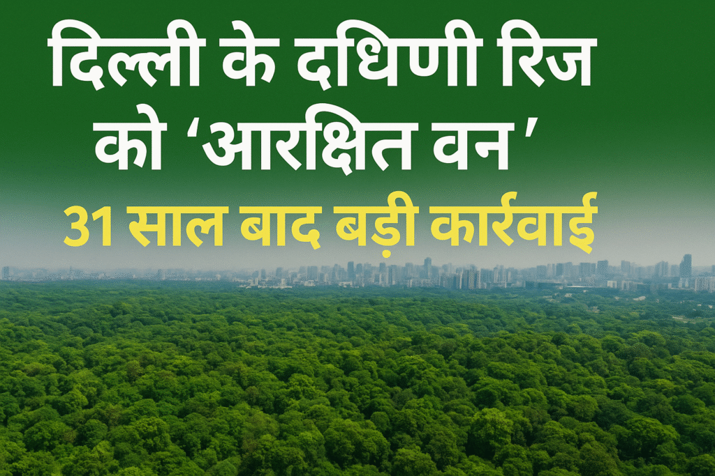 दिल्ली सरकार ने दक्षिणी रिज के 4,100 हेक्टेयर क्षेत्र को आरक्षित वन घोषित किया। 31 साल बाद यह कदम राजधानी के पर्यावरण संरक्षण के लिए ऐतिहासिक है।
