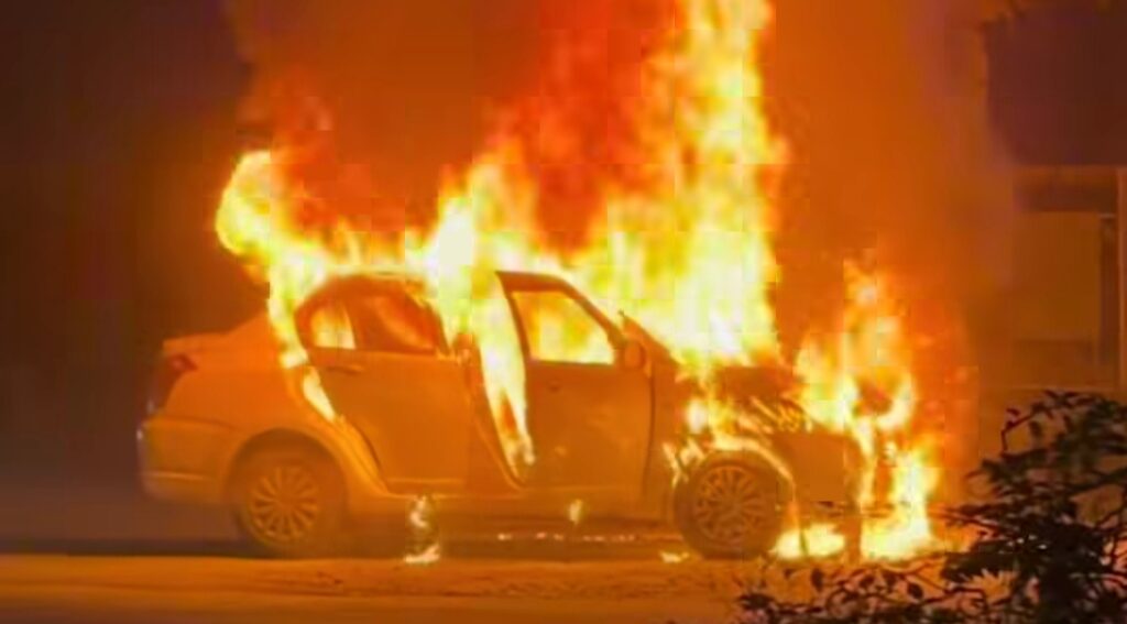 तेज़ लपटों ने कार को किया राख – लोग सुरक्षित